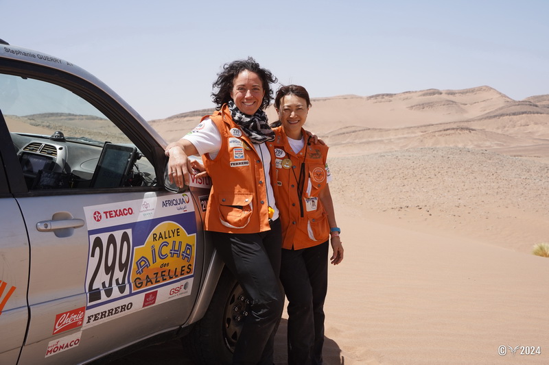 En 2018, la française a eu un gros accident, jusqu’à être héliportée jusqu’au bivouac. « J’ai subi un choc post traumatique. Sincèrement, je me suis vue mourir. Le lendemain, je suis repartie mais après ça, je me suis promis que la priorité c’était ma sécurité ». Un état d’esprit partagée avec sa coéquipière. Même si Kaori ne parle pas français et si son anglais n’est pas parfait, les deux femmes trouvent toujours un moyen de communiquer. « Stéphanie s’adapte à mon vocabulaire, elle me parle lentement. Entre nous, il y a beaucoup d’amour et de respect, ça fonctionne très bien ». Ce soir, elles dormiront juste à côté des dunes en cette dernière étape de marathon. « La voiture ne nous permet pas de monter. Mais on accepte, on est là pour ça ».